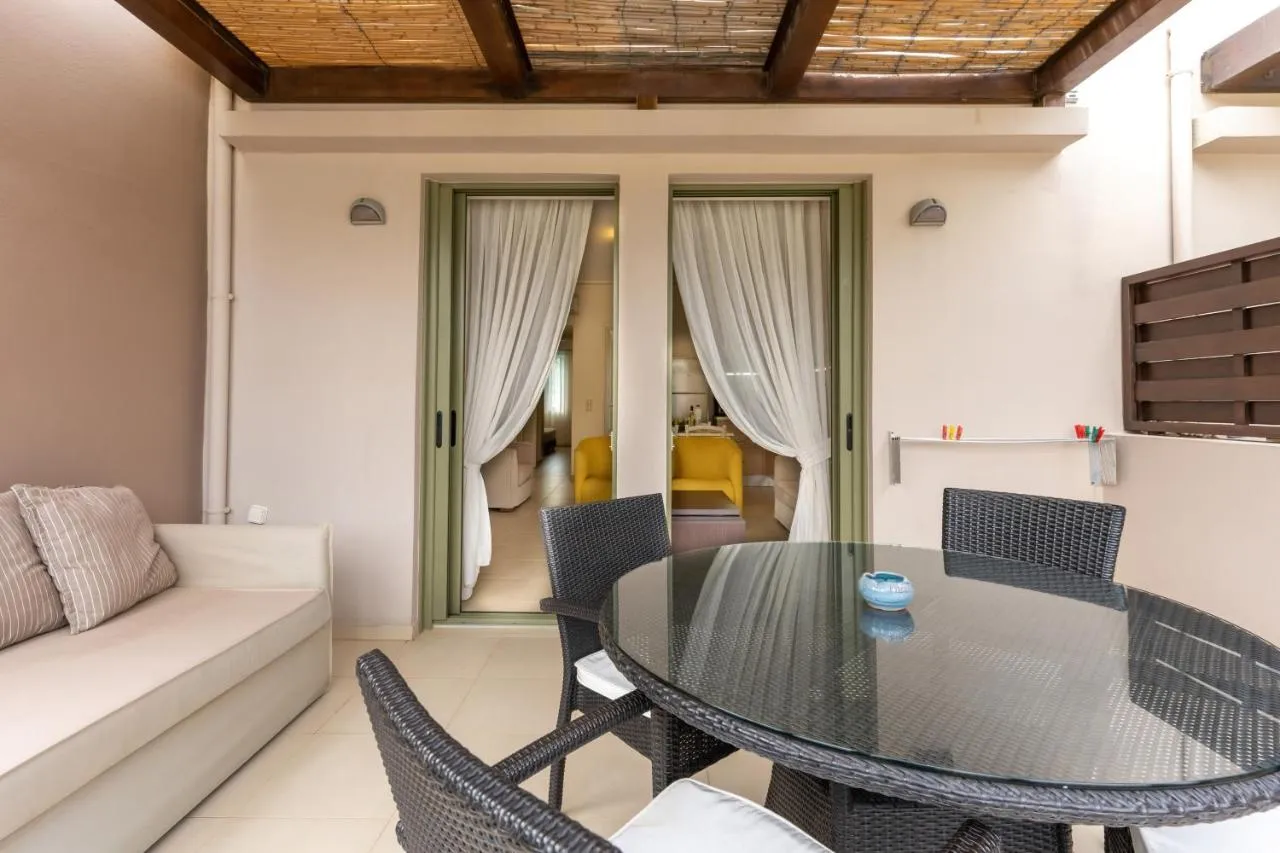 Spacious 2-bedroom apartment featuring a terrace with side views of the beach of Plakias or balconies overlooking pool and garden views.