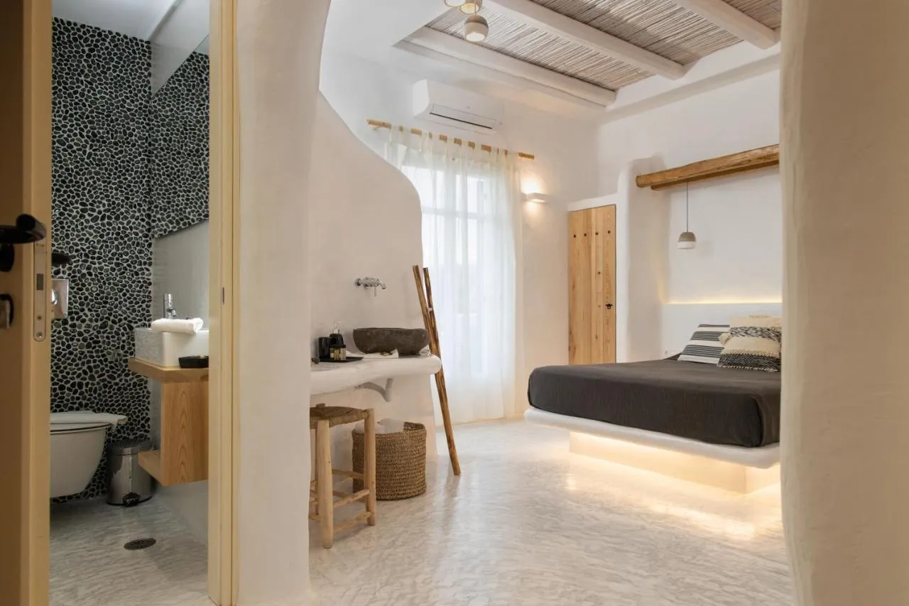 Hotelul este construit în conformitate cu standardele de arhitectură ale insulei, cu o notă de albastru pe alb. Doar suficient pentru a te face să te simți că te afli pe o insulă grecească.