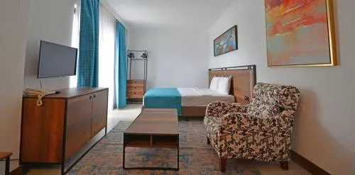 Dimensiuni: 28 mp Numar de camere: 1 camera Featuring a balcony with pool or garden view, this suite offers a living room, sofa, flat-screen TV, air conditioning, free WiFi and safety deposit box. Private bathroom comes with hairdryer, free toiletries and slippers.