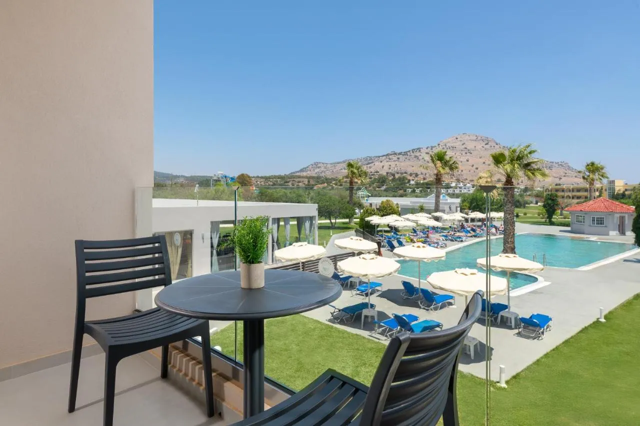 Dimensiuni: 24 mp Numar de camere: 1 camera Decorată în culori pastelate și cu mobilier din lemn deschis la culoare, această cameră are un balcon cu vedere la grădină și la piscină. Există frigider, TV prin satelit și baie privată cu uscător de păr.