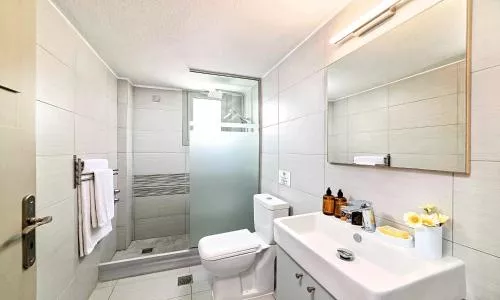 Dimensiuni: 27 mp Numar de camere: 2 camere The Gardens Double Room, features a bedroom with double bed,a private bathroom with a shower, air conditioning, a refrigerator, a 32” TV, a safe, an internal dial telephone, WiFi internet access and an outdoor seating area with a sofa-bed. Baie privată cu duș