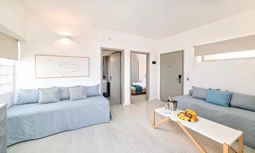 Dimensiuni: 40 mp Numar de camere: 4 camere Located on the ground floor, this suite opens to a furnished balcony and patio with pool and mountain views. Simply yet tastefully decorated with soft tones, it includes a separate bedroom, a seating area and a kitchenette with dining table. It also offers: