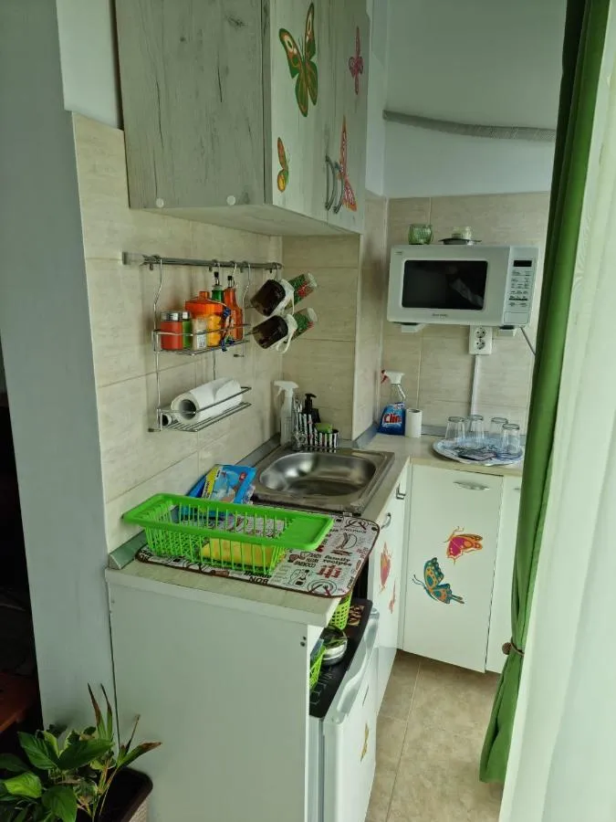 Dimensiuni: 26 mp Numar de camere: 2 camere Offering free toiletries, this double room includes a private bathroom with a shower, a hairdryer and slippers. In the well-equipped kitchenette, guests will find a stovetop, a refrigerator, kitchenware and a toaster. The spacious air-conditioned double room offers a flat-screen TV with cable channels, a private entrance, soundproof walls, a minibar as well as sea views. The unit has 1 bed. Baie privată cu duș