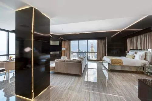 Dimensiuni: 929 mp Numar de camere: 1 camera Această suită luxoasă este situată la etajul 72 și are 5 dormitoare cu amenajări excelente, inclusiv un dormitor matrimonial superb. Toate camerele au baie privată şi pat king-size. Suita are facilități de lux.