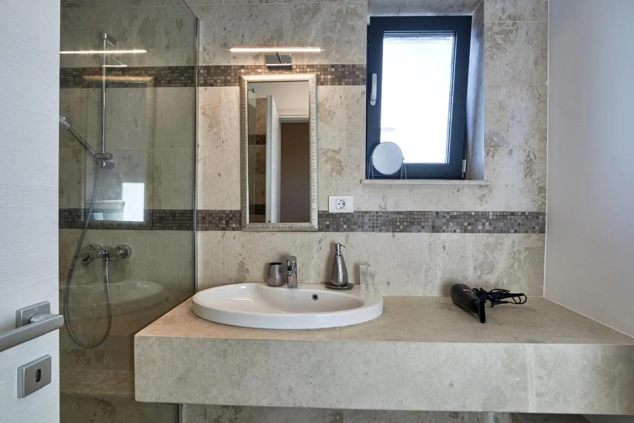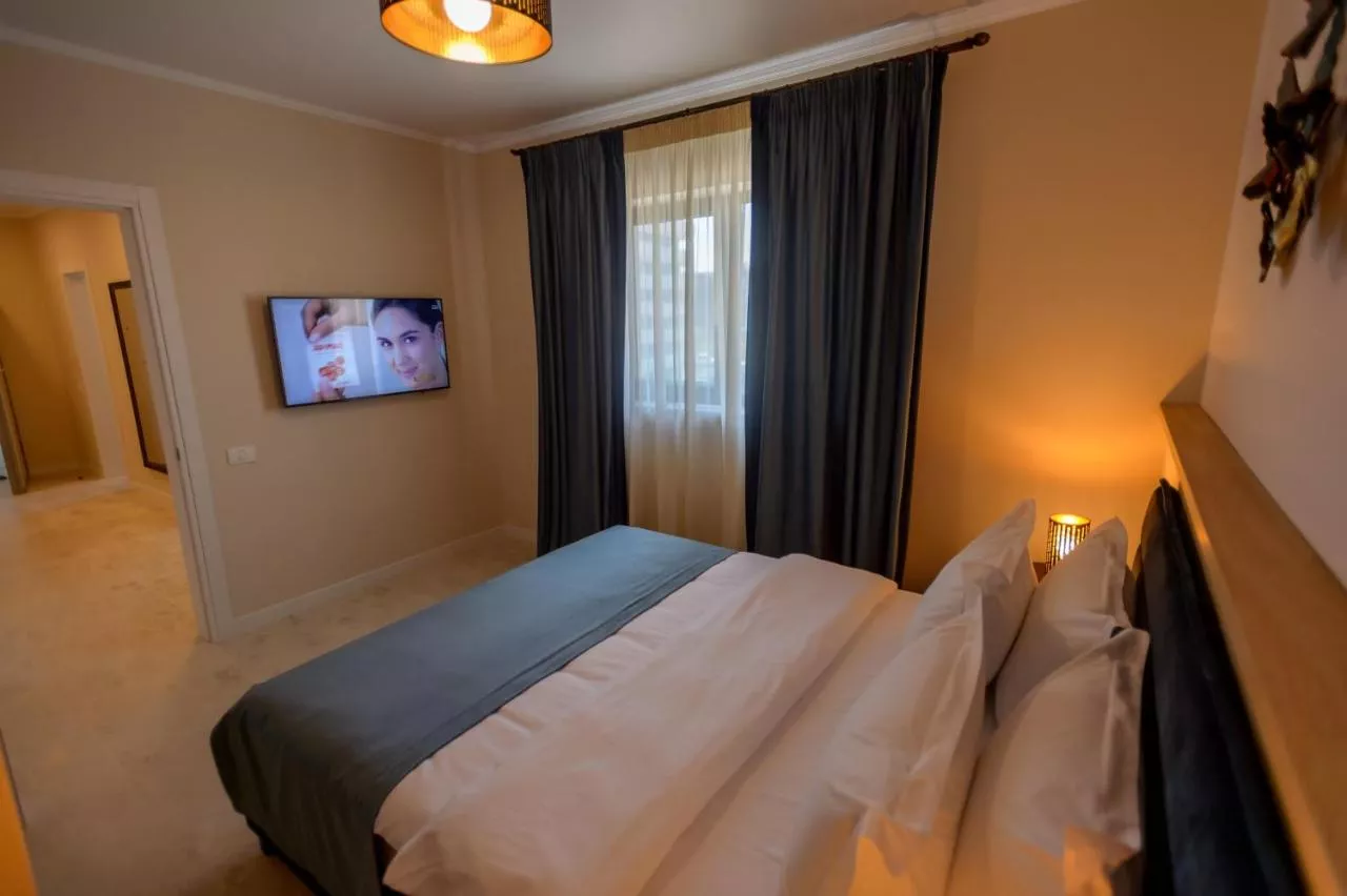 Dimensiuni: 70 mp Numar de camere: 1 camera Featuring a private entrance, this air-conditioned apartment is comprised of 1 living room, 1 separate bedroom and 2 bathrooms with a shower and a hairdryer. The well-equipped kitchen features a stovetop, a refrigerator, kitchenware and an oven. The spacious apartment offers a tea and coffee maker, a dining area, heating, a TV with satellite channels, as well as sea views. The unit offers 2 beds. Baie privată cu duș