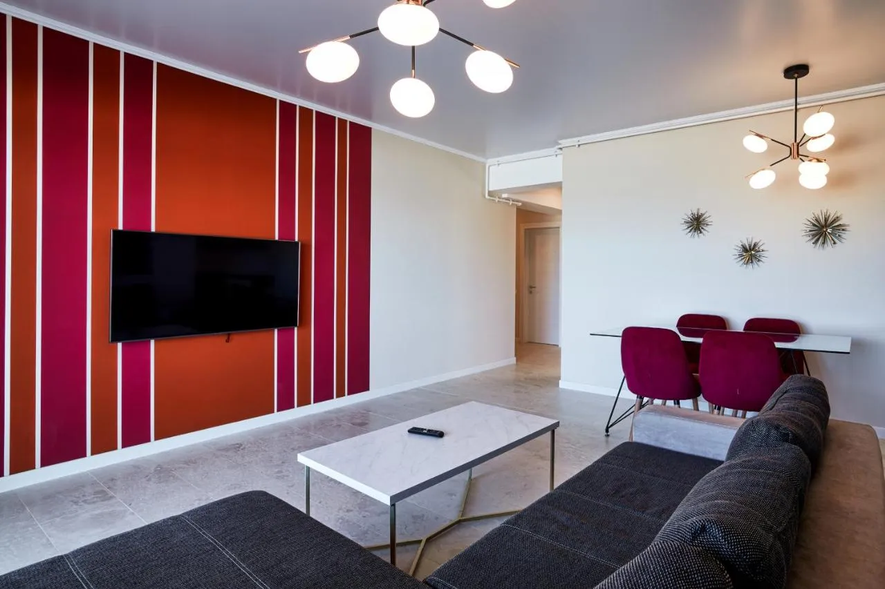 Dimensiuni: 70 mp Numar de camere: 4 camere Featuring a private entrance, this air-conditioned apartment is comprised of 1 living room, 1 separate bedroom and 2 bathrooms with a shower and a hairdryer. In the well-equipped kitchen, guests will find a stovetop, a refrigerator, kitchenware and an oven. The spacious apartment offers a TV with satellite channels, a tea and coffee maker, a dining area, heating as well as sea views. The unit offers 2 beds.