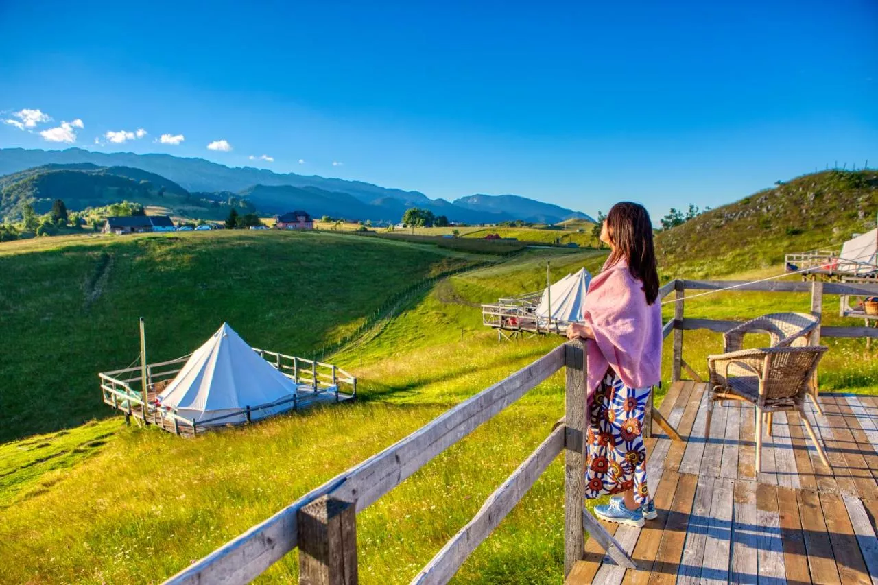 The tent offers a private entrance, a tea and coffee maker, a terrace with mountain views as well as a shared bathroom boasting a shower. The unit has 2 beds.