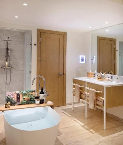 Dimensiuni: 48 mp Numar de camere: 2 camere With views of the garden, this suite features a private bathroom, a living area with sofa bed, a dining area and a balcony with a hydromassage bathtub.