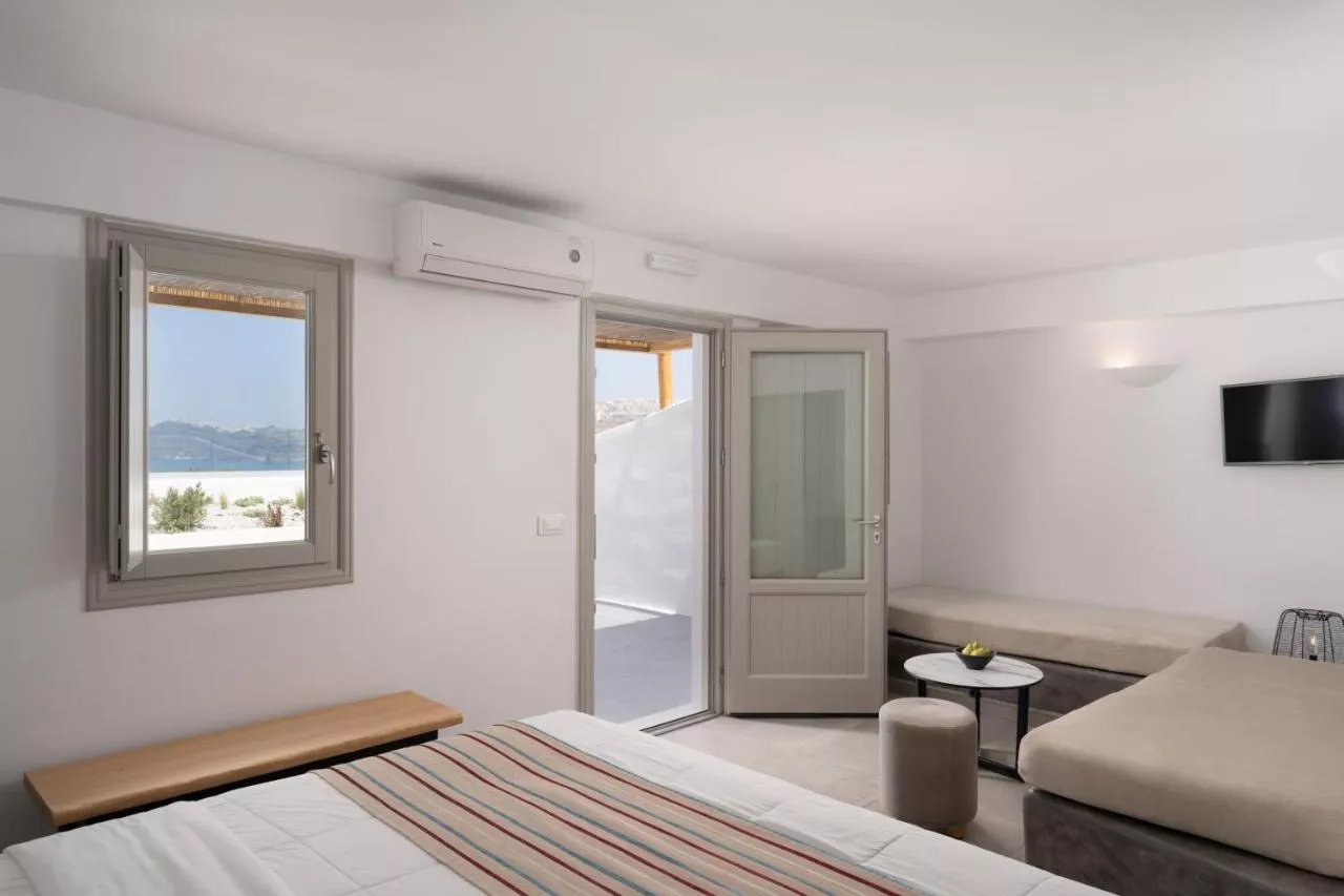 Dimensiuni: 35 mp Numar de camere: 1 camera Offering caldera and Aegean Sea views from its veranda, this air-conditioned room has a flat-screen smart TV. It features private bathroom with slippers and hairdryer. Baie privată cu duș