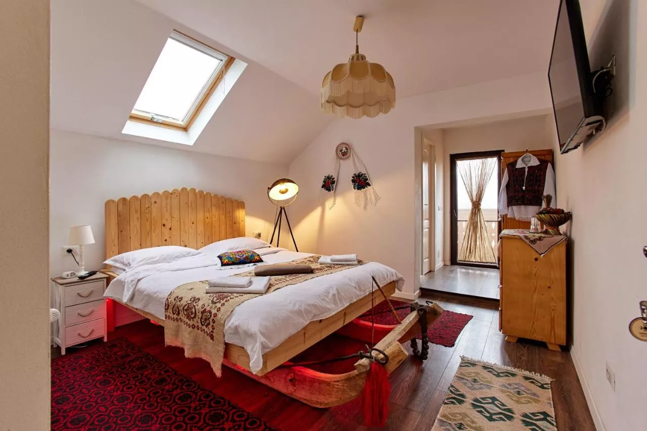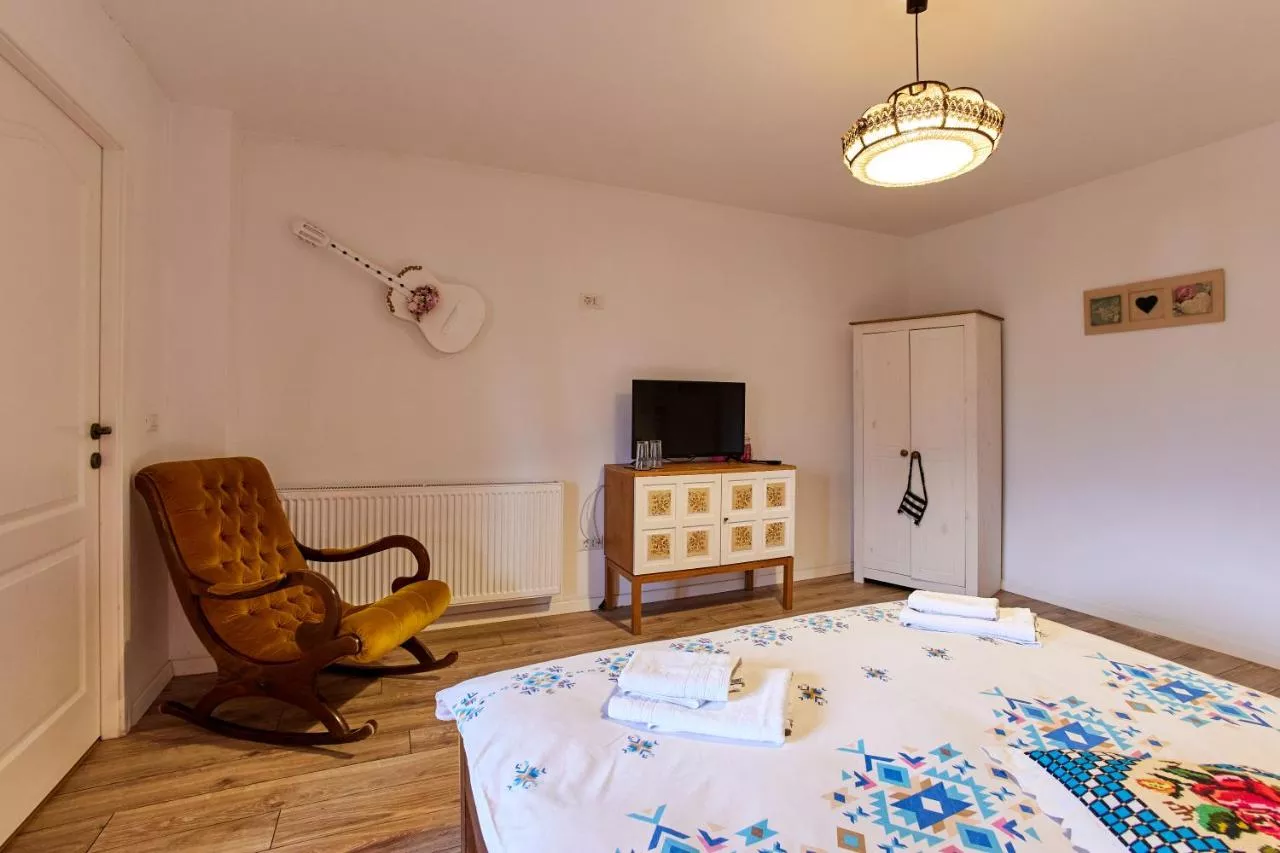 Facilităţile camerei: Pardoseală de lemn sau parchet Încălzire Garderobă sau dulap Produse de curățenie Plasă de ţânţari Media/Tehnologie: TV cu ecran plat TV Canale prin cablu Servicii/Suplimente: Serviciu de trezire Prosoape Prosoape/lenjerie de pat contra cost Exterior/Vedere: Vedere la munte Balcon Vedere la grădină Mâncăruri și băuturi: Mobilier de grădină Zonă de luat masa în aer liber Baie: Papuci de casă Uscător de păr Toaletă Duş Hârtie igienică Cadă Baie privată Curățenie și dezinfectare: Dezinfectant pentru mâini