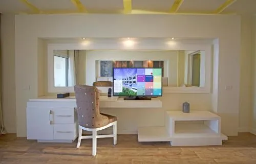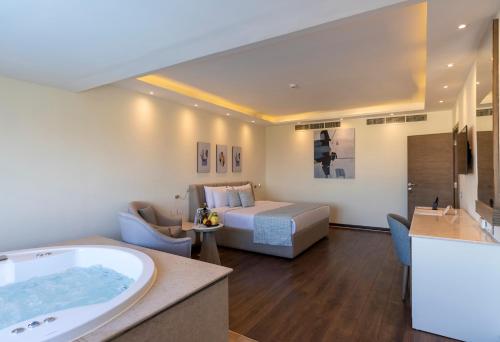 General : Seif pentru laptop Seif Fier de călcat Facilităţi de călcat Pardoseală de gresie/marmură Intrare privată Încălzire Aer condiţionat Baie: Halat de baie Prosoape Articole de toaletă gratuite Papuci de casă Uscător de păr Toaletă Duş bideu Hârtie igienică Baie privată Vedere: Vedere la mare Vedere la piscină Media/Tehnologie: TV cu ecran plat TV Telefon Canale prin cablu Canale prin satelit Servicii: Serviciu de trezire Zonă de living: Zonă de relaxare Exterior: Terasă Balcon Facilităţile camerei: Priză lângă pat Mâncăruri și băuturi: Aparat pentru prepararea de ceai/cafea Minibar Dormitor: Lenjerie de pat Garderobă sau dulap Bucătărie: Cană fierbător