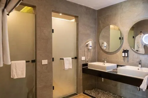 Dimensiuni: 50 mp Numar de camere: 10 camere Această cameră are un pat king-size sau paturi twin, zonă de relaxare și o terasă extinsă cu acces direct la piscină. Baia este dotată cu o cabină de duș separată, bideu și articole de toaletă gratuite. De asemenea, dotările includ WiFi gratuit, TV LED cu canale prin satelit, facilități pentru prepararea de ceai/cafea și minibar. Baie privată cu duș