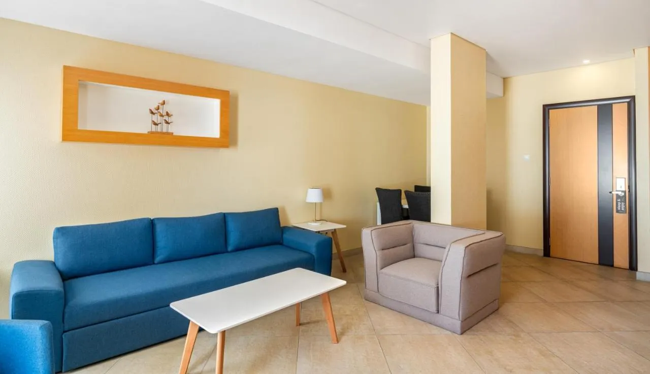 Dimensiuni: 32 mp Numar de camere: 3 camere Camera dublă spațioasă are aer condiționat, minibar, balcon cu vedere la mare, precum și baie privată cu cadă. Baie privată cu cadă