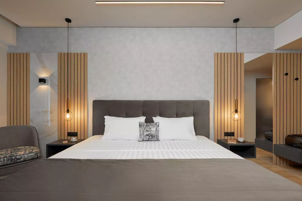 Dimensiuni: 55 mp Numar de camere: 1 camera Deluxe suites offer a bedroom with large balcony and a separate living room. Guests are offered free access to the indoor parking.
