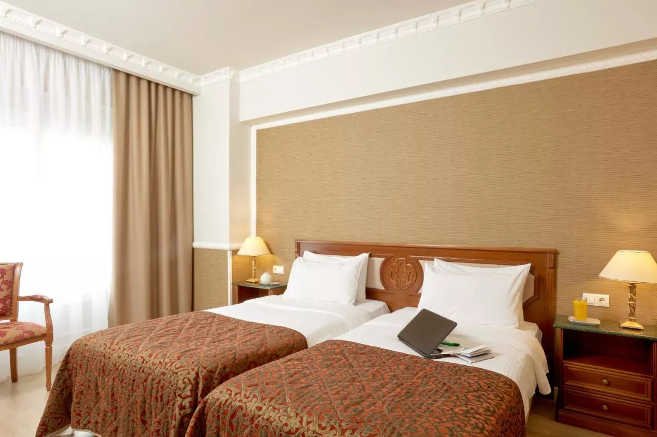 Fiecare cameră și suită a Grand Hotel Palace este insonorizată și oferă un minibar și o baie privată cu cadă sau duș și uscător de păr.