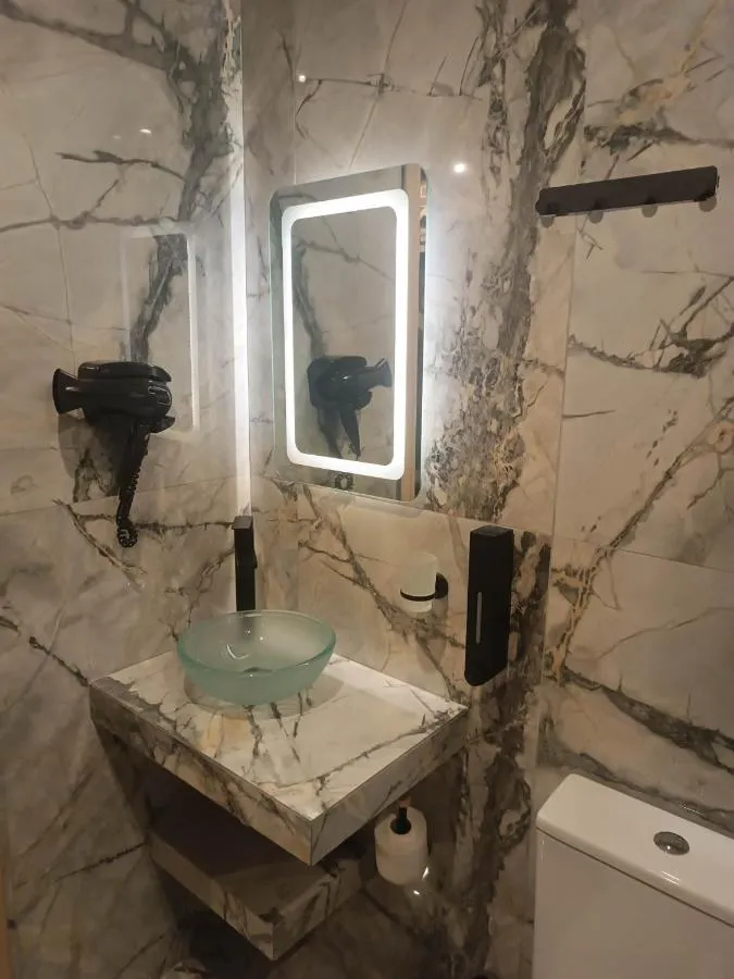 Bucătărie: Masă Frigider Plită de gătit Ustensile de bucătărie Chicinetă Cană fierbător Bucătărie Media/Tehnologie: TV cu ecran plat TV Canale prin satelit Servicii: Serviciu de trezire Exterior: Mobilier de grădină Balcon General : Fier de călcat Ventilator Pardoseală de gresie/marmură Intrare privată Încălzire Izolare fonică Cameră(e) comunicantă(e) disponibilă(e) Aer condiţionat Baie: Prosoape Uscător de păr Toaletă Duş Hârtie igienică Baie privată Facilităţile camerei: Priză lângă pat Caracteristicile clădirii: Independentă Mâncăruri și băuturi: Aparat pentru prepararea de ceai/cafea Dormitor: Lenjerie de pat Garderobă sau dulap Vedere: Vedere la oraș Distanțare fizică: Aer condiționat individual pentru fiecare cameră de la proprietate