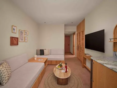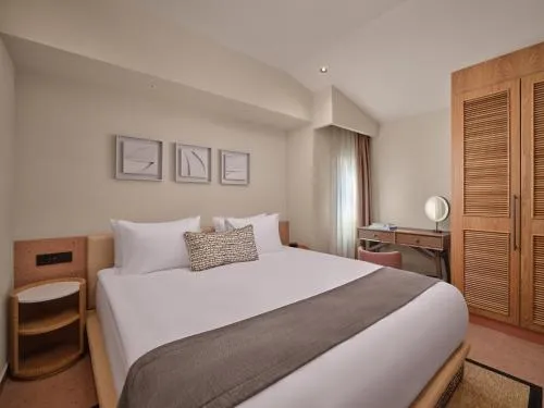 General : Seif Pardoseală de gresie/marmură Aer condiţionat Servicii: Serviciu de trezire Zonă de living: Canapea Zonă de relaxare Vedere: Vedere la piscină Baie: Prosoape Articole de toaletă gratuite Uscător de păr Toaletă Duş Hârtie igienică Baie privată Exterior: Terasă Balcon Mâncăruri și băuturi: Aparat pentru prepararea de ceai/cafea Minibar Media/Tehnologie: TV Telefon Canale prin satelit Dormitor: Lenjerie de pat Garderobă sau dulap Curățenie și dezinfectare: Dezinfectant pentru mâini