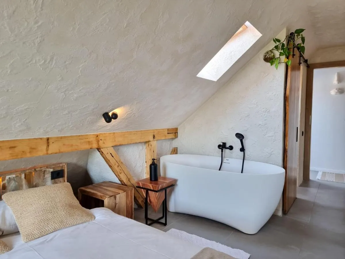 Bucătărie: Mașină de cafea Frigider Produse de curățenie Accesibilitate: Etaje superioare accesibile doar pe scări Media/Tehnologie: TV cu ecran plat TV Serviciu de streaming (ex. Netflix) Canale prin cablu Dormitor: Paturi extra lungi (> 2 metri) Lenjerie de pat Garderobă sau dulap Vedere: Vedere la munte Vedere la grădină Vedere la oraș General : Fier de călcat Pardoseală de gresie/marmură Intrare privată Încălzire Izolare fonică Aer condiţionat Baie: Prosoape Articole de toaletă gratuite Papuci de casă Uscător de păr Toaletă Hârtie igienică Cadă Baie privată Zonă de living: Zonă de relaxare Exterior: Terasă Patio Balcon Facilităţile camerei: Priză lângă pat Mâncăruri și băuturi: Aparat pentru prepararea de ceai/cafea Distanțare fizică: Aer condiționat individual pentru fiecare cameră de la proprietate