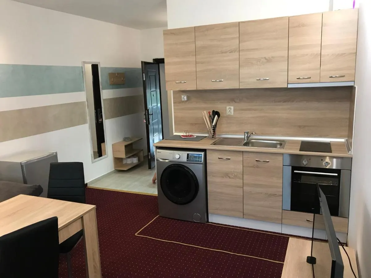 Dimensiuni: 55 mp Numar de camere: 3 camere Boasting a private entrance, this air-conditioned apartment includes 1 living room, 1 separate bedroom and 1 bathroom with a shower and a hairdryer. In the fully equipped kitchen, guests will find a stovetop, a refrigerator, kitchenware and an oven. Featuring a terrace with city views, this apartment also offers a washing machine and a flat-screen TV with cable channels. The unit has 2 beds.