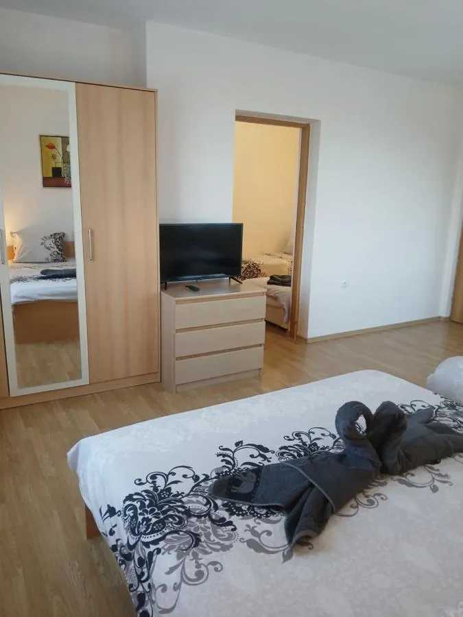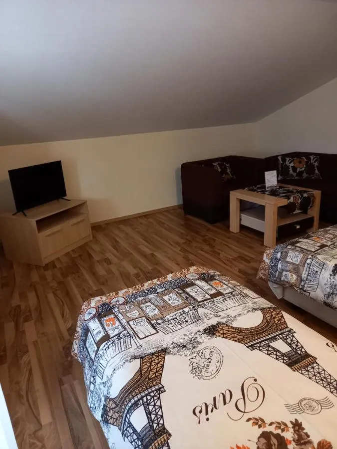 Dimensiuni: 15 mp Numar de camere: 2 camere Providing free toiletries, this double room includes a shared bathroom with slippers. The double room provides a flat-screen TV with cable channels, a private entrance, a seating area, a wardrobe as well as garden views. The unit offers 2 beds.