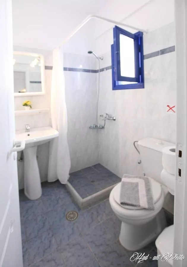 Complexul este format din camere cu aer condiționat, în stil cicladic, majoritatea cu vedere la mare și la răsărit. Acestea dispun de o baie privată, un televizor și un frigider.
