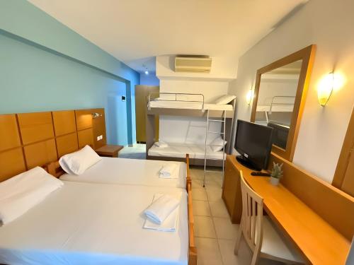 Situat la doar câțiva pași de Marea Mediterană, acest hotel din Chanioti oferă o piscină în aer liber cu secțiune separată pentru copii și Wi-Fi gratuit.