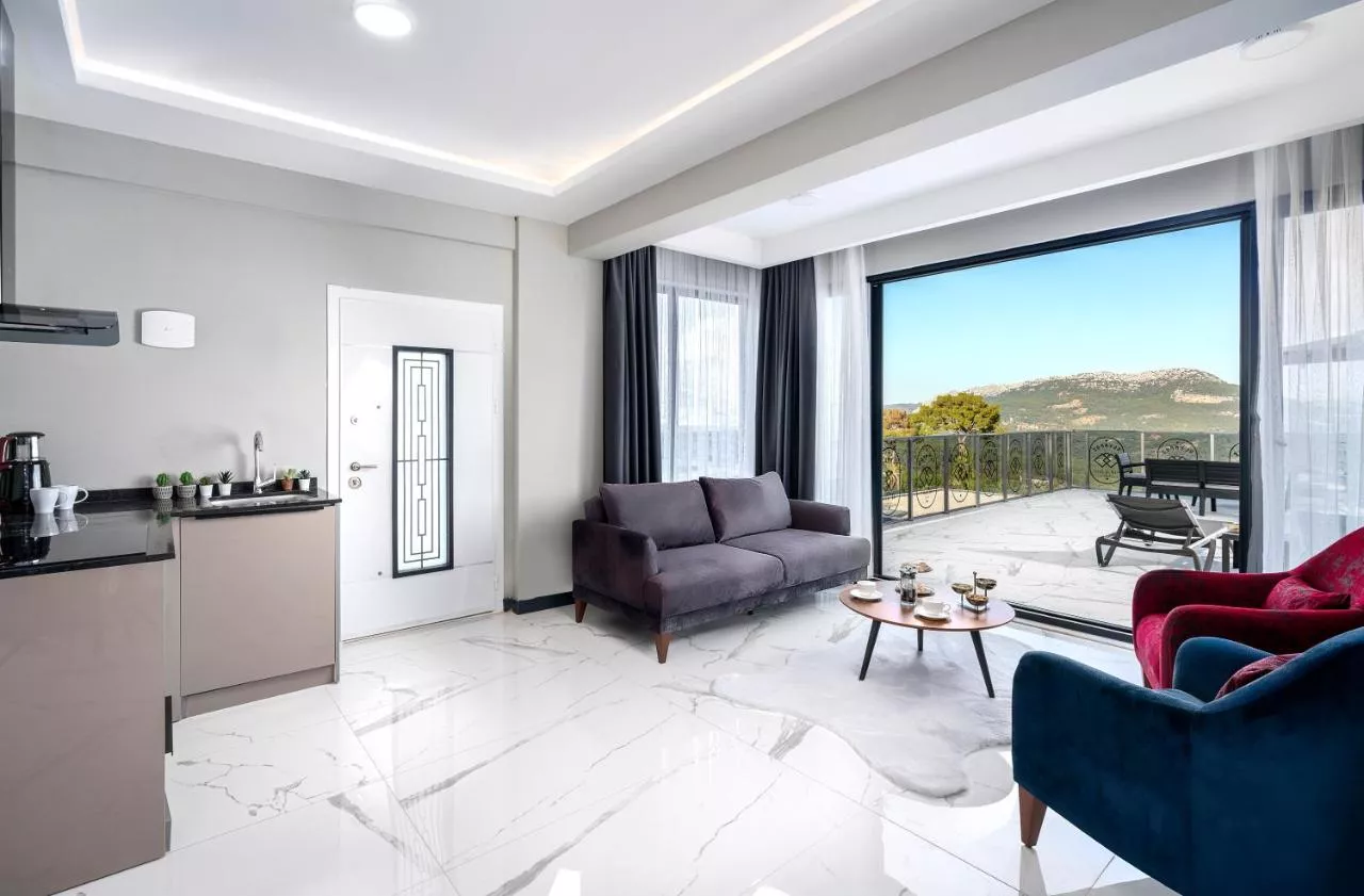 Dimensiuni: 60 mp Numar de camere: 5 camere This spacious suite comes with 1 living room, 1 separate bedroom and 1 bathroom with a shower and free toiletries. The suite's kitchenette, which has kitchenware and an electric kettle, is available for cooking and storing food. The air-conditioned suite features a flat-screen TV with cable channels, a washing machine, a minibar, a seating area as well as mountain views. The unit has 2 beds. Baie privată cu duș