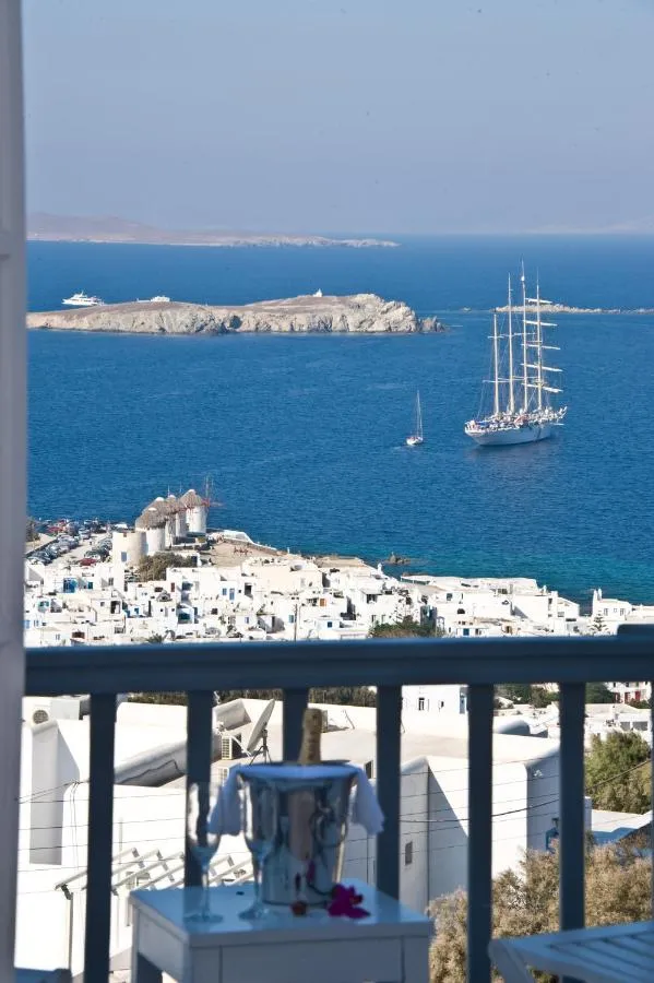 La doar 500 de metri de centrul Mykonos, hotelul de 4 stele Hermes oferă o piscină și WiFi gratuit. Camerele elegante au un balcon mobilat cu vedere la Marea Egee sau la grădinile hotelului.