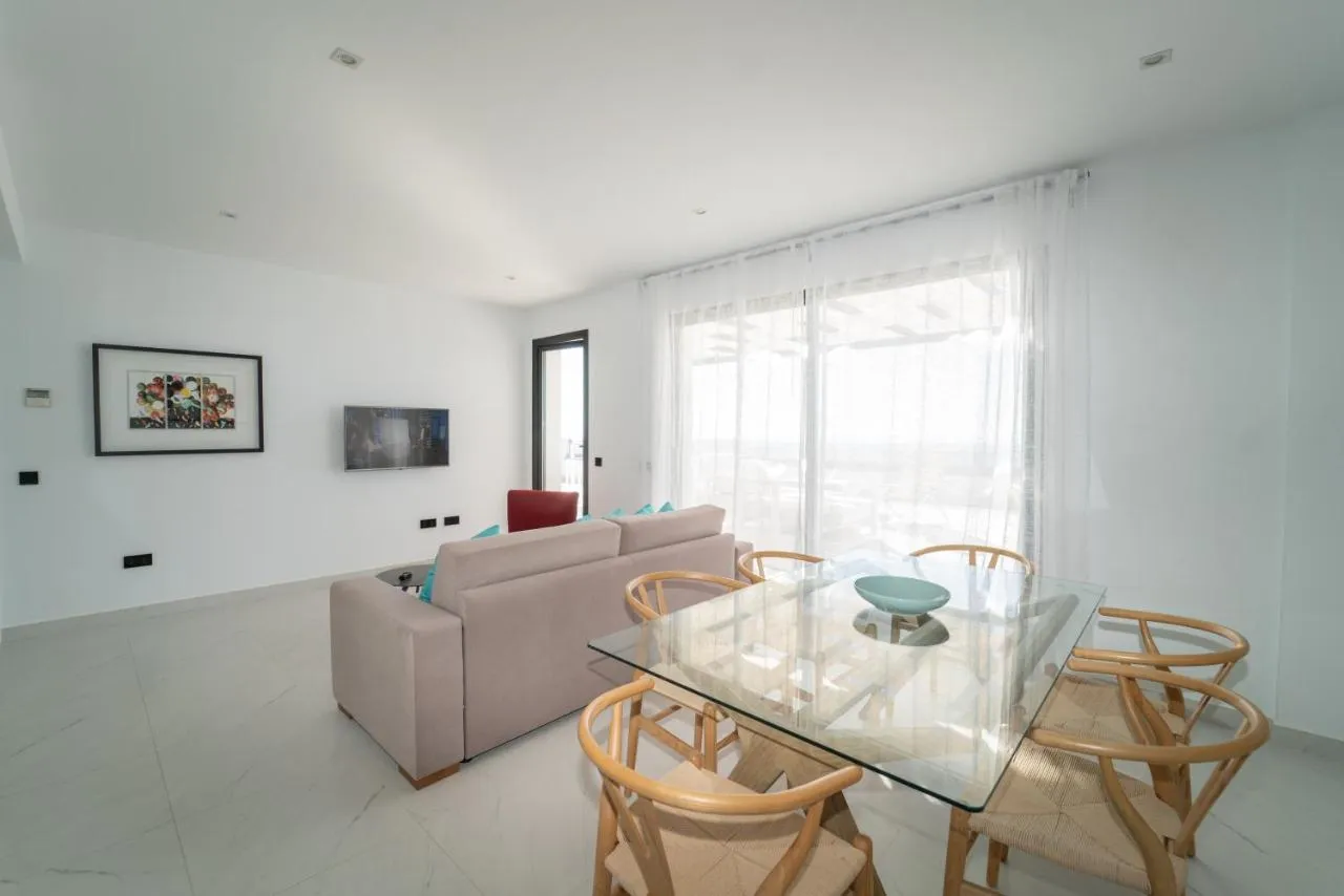 Dimensiuni: 135 mp Numar de camere: 1 camera This spacious apartment comes with 1 living room, 3 separate bedrooms and 3 bathrooms with a shower and free toiletries. The fully equipped kitchen has a stovetop, a refrigerator, a dishwasher and kitchenware. The air-conditioned apartment features a flat-screen TV with satellite channels, a washing machine, a private entrance, a tea and coffee maker as well as sea views. The unit has 4 beds.
