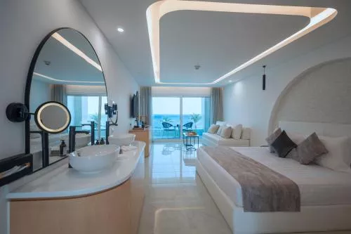 Dimensiuni: 60 mp Numar de camere: 2 camere Această suită spațioasă oferă 2 dormitoare, o zonă de relaxare, 1 baie cu duș și o terasă unde oaspeții se pot relaxa. Suita dotată cu aer condiționat are minibar, TV cu ecran plat cu canale prin satelit și balcon. Unitatea include 3 paturi. Baie privată cu duș