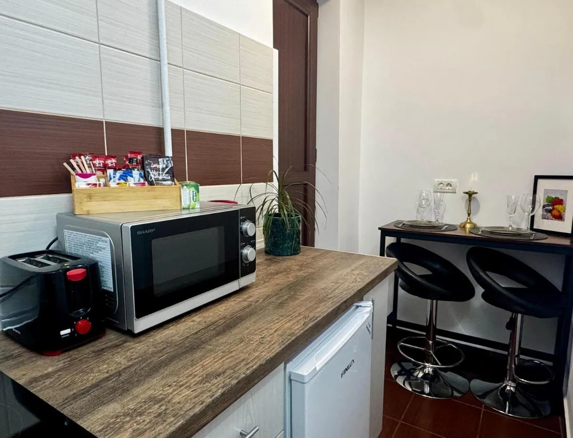 Apartamentul dispune de un televizor cu ecran plat și cablu. Bucătăria este dotată cu un cuptor cu microunde, un prăjitor de pâine și un frigider, iar baia privată este dotată cu papuci și un uscător de păr.