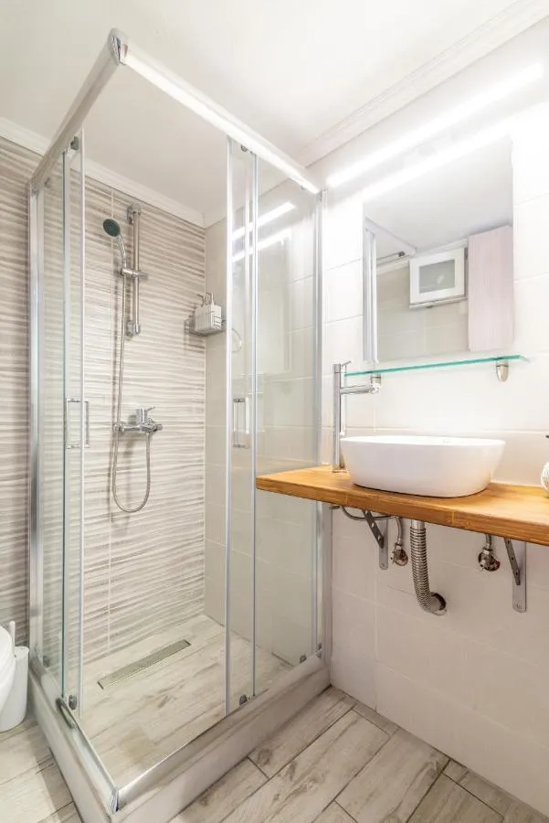 Mâncăruri și băuturi: Masă Mobilier de grădină Frigider Plită de gătit Ustensile de bucătărie Cană fierbător Zonă de luat masa în aer liber Accesibilitate: Etaje superioare accesibile cu liftul Media/Tehnologie: TV cu ecran plat TV Facilităţile camerei: Fier de călcat Priză lângă pat Pardoseală de gresie/marmură Intrare privată Încălzire Maşină de spălat Garderobă sau dulap Produse de curățenie Plasă de ţânţari Aer condiţionat Servicii/Suplimente: Prosoape Lenjerie de pat Caracteristicile clădirii: Apartament privat în clădire Independentă Baie: Articole de toaletă gratuite Uscător de păr Toaletă Duş Hârtie igienică Baie privată Exterior/Vedere: Balcon Distanțare fizică: Aer condiționat individual pentru fiecare cameră de la proprietate
