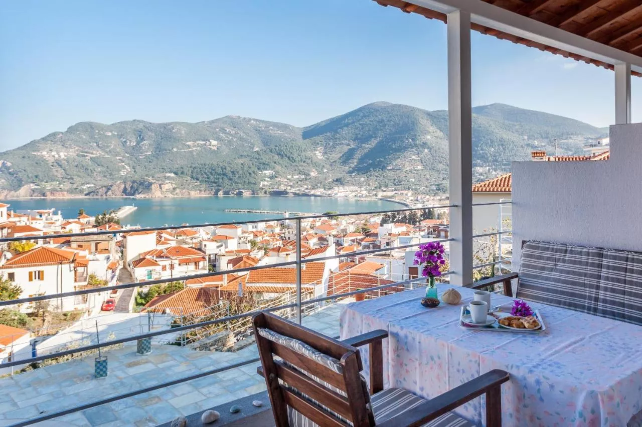 Hotelul Thea Home se află la 4 km de plaja Stafilos. Portul Skopelos este la 5 minute de mers pe jos de la hotel. Restaurante și mini-marketuri pot fi găsite în apropiere.