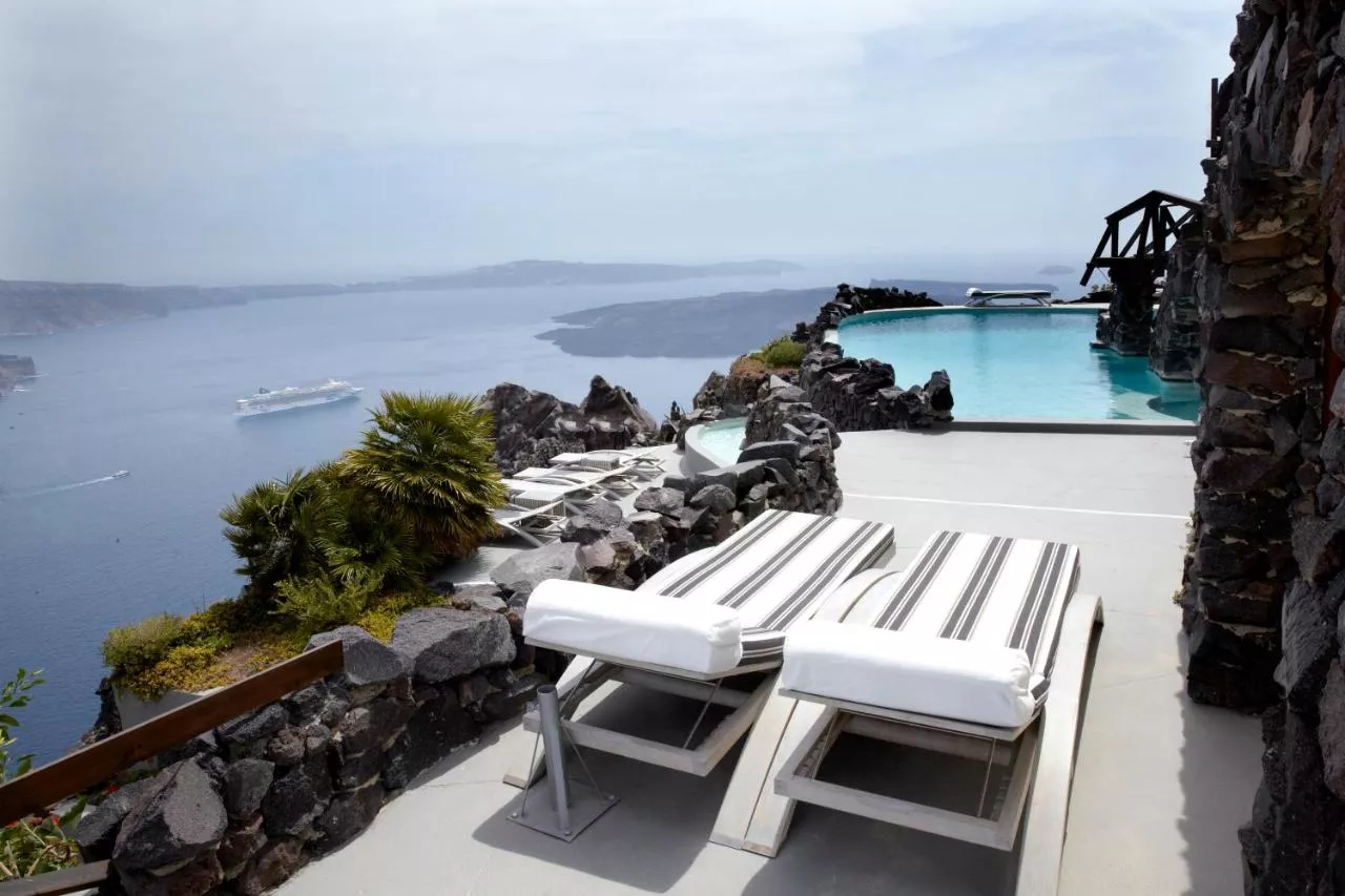 Acest hotel de lux, situat la marginea orașului Imerovigli, oferă oaspeților oportunitatea de a face excursii cu iahturile și barca rapidă private. Oaspeții pot explora insula cu autobuzul privat.
