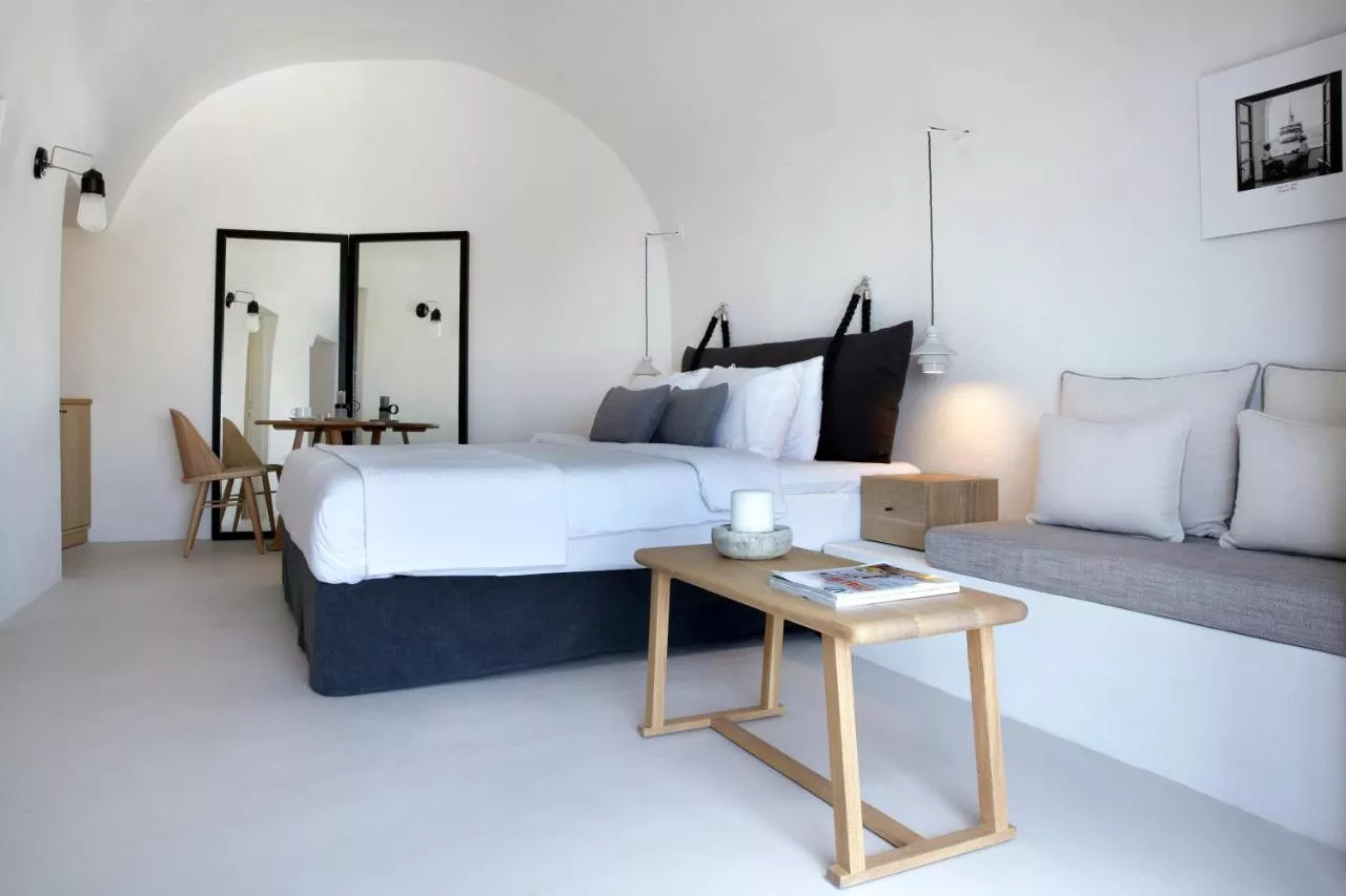 Toate unitățile cu aer condiționat au balcoane cu vederi panoramice asupra golfului vulcanic Santorini. Unele camere sunt săpate în stâncă, oferindu-le un ambient natural. Sunt disponibile un televizor cu ecran plat și satelit și un CD-player.
