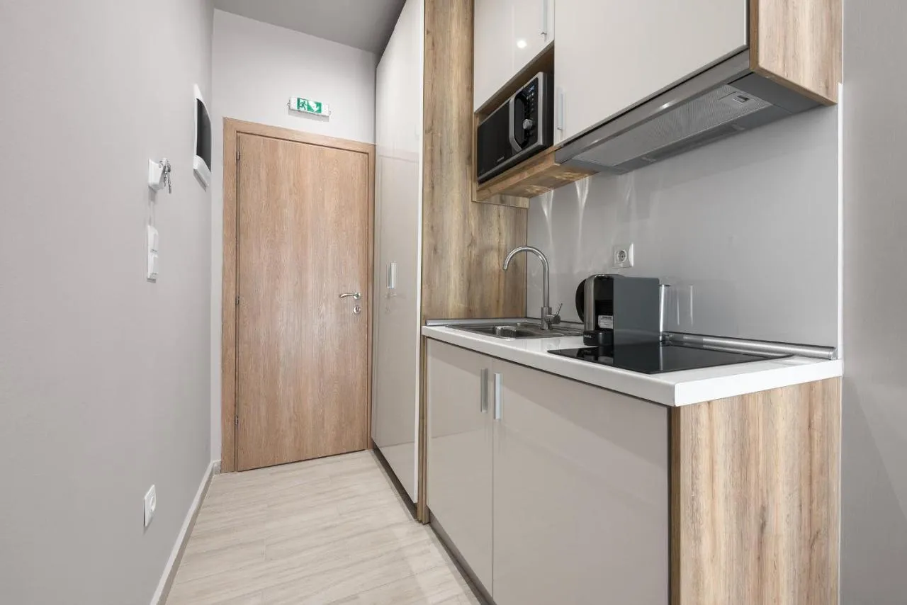 Food & Drink: Coffee machine Dining table Oven Tea/Coffee maker Microwave Refrigerator Toaster Stovetop Kitchenware Kitchenette Electric kettle Kitchen Dining area Accessibility: Upper floors accessible by elevator Media & Technology: Flat-screen TV TV Streaming service (like Netflix) Room Amenities: Sofa Seating Area Tile/marble floor Sofa bed Heating Wardrobe or closet Soundproofing Air conditioning Services & Extras: Towels Linen Building characteristics: Private apartment in building Bathroom: Free toiletries Hairdryer Toilet Shower Toilet paper Private bathroom Outdoor & View: Balcony View