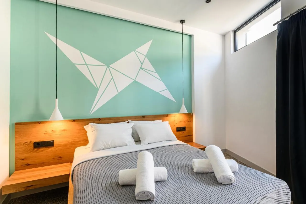 Camerele cu aer condiționat de la Mosaikon dispun de o baie privată și o bucătărie comună.