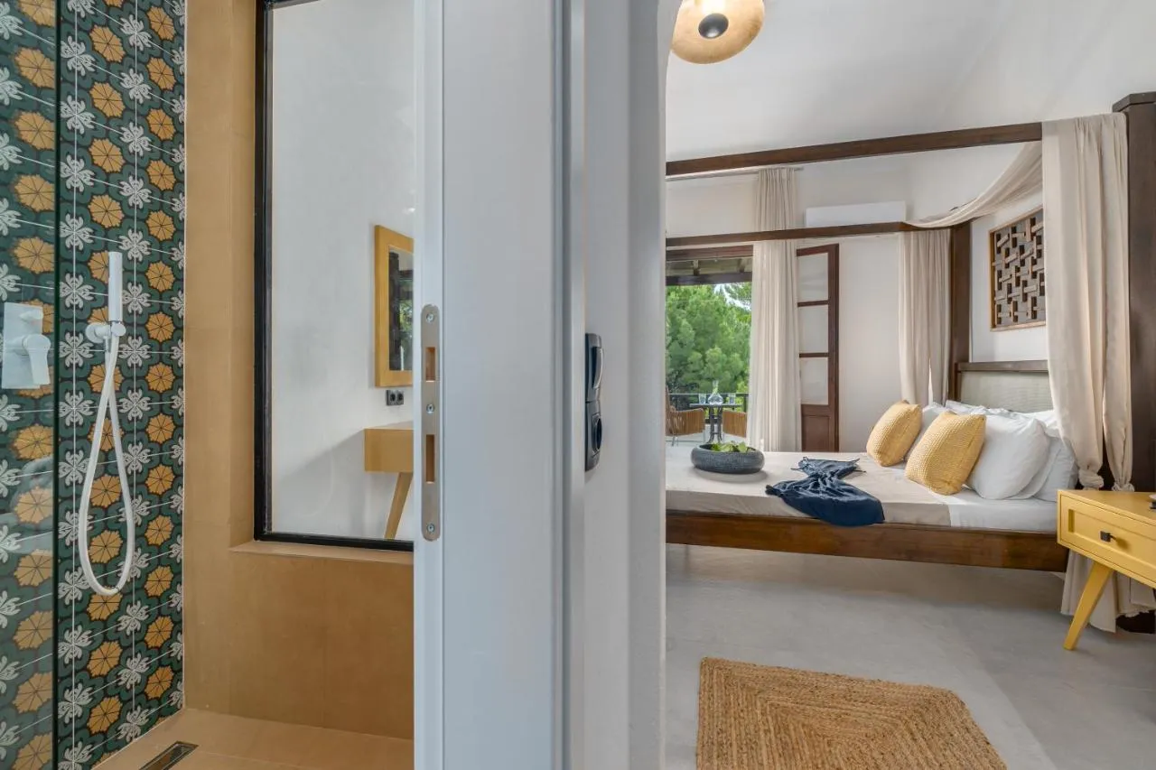 Bucătărie: Mașină de cafea Frigider Cană fierbător General : Seif Fier de călcat Pardoseală de gresie/marmură Încălzire Aer condiţionat Vedere: Vedere la mare Vedere la piscină Vedere la grădină Accesibilitate: Etaje superioare accesibile doar pe scări Media/Tehnologie: TV cu ecran plat TV Caracteristicile clădirii: Semi-independentă Exterior: Mobilier de grădină Patio Balcon Zonă de luat masa în aer liber Baie: Prosoape Articole de toaletă gratuite Uscător de păr Toaletă Duş Hârtie igienică Baie privată Zonă de living: Zonă de relaxare Zonă de luat masa Facilităţile camerei: Priză lângă pat Mâncăruri și băuturi: Aparat pentru prepararea de ceai/cafea Dormitor: Lenjerie de pat Garderobă sau dulap Distanțare fizică: Aer condiționat individual pentru fiecare cameră de la proprietate Curățenie și dezinfectare: Dezinfectant pentru mâini