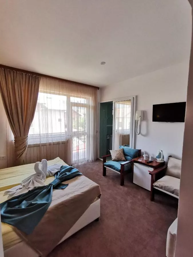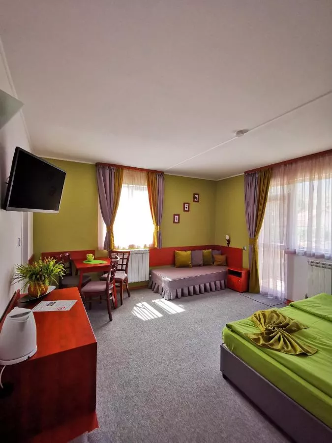 Dimensiuni: 30 mp Numar de camere: 1 camera Guests will have a special experience as the triple room provides a sauna. This triple room includes a flat-screen TV with cable channels, a private bathroom as well as a terrace with garden views. The unit offers 2 beds.