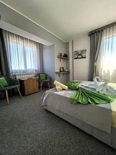 Dimensiuni: 15 mp Numar de camere: 2 camere This double room features a sauna. Featuring free toiletries, this double room includes a private bathroom with a shower and a hairdryer. The double room features soundproof walls, a seating area, a wardrobe, a flat-screen TV with cable channels, as well as mountain views. The unit has 1 bed. Baie privată cu duș