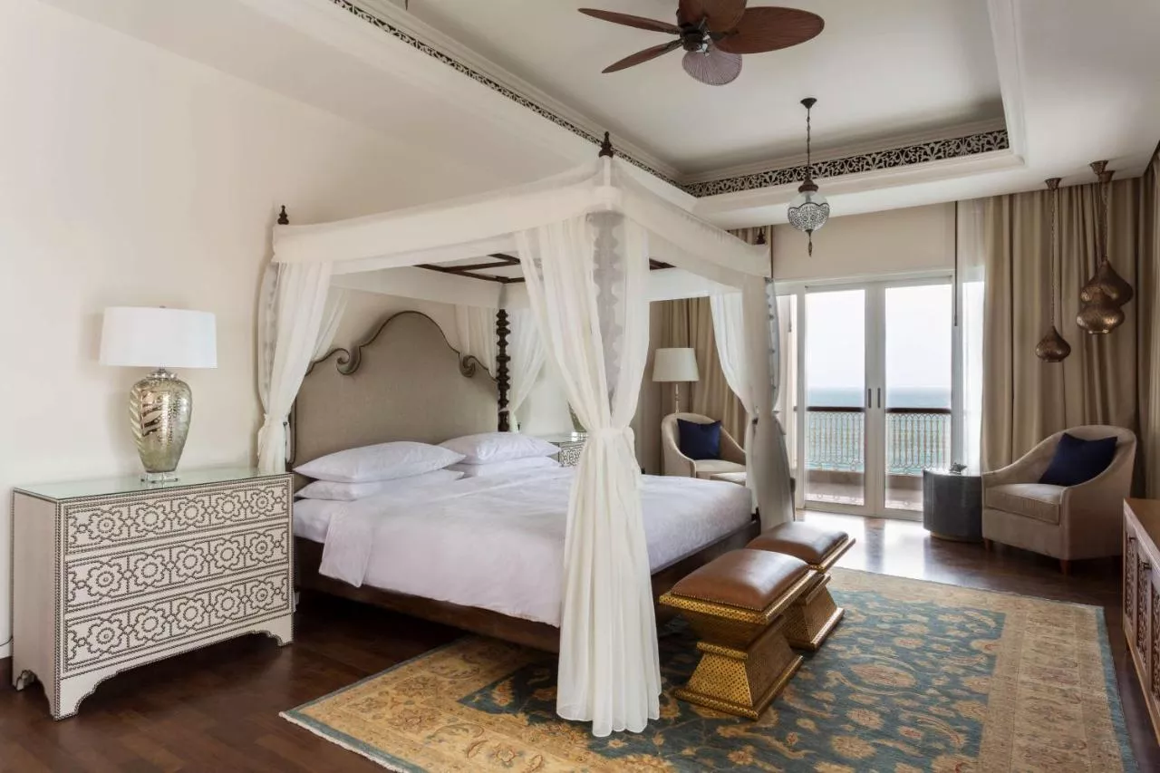 Dimensiuni: 50 mp Numar de camere: 3 camere Offering a balcony with views of the Indian Ocean and Dhow Harbour, this room is equipped with a flat-screen cable TV, a minibar and tea-and-coffee-making facilities. A private bathroom comprises a bathtub, free toiletries, and a hairdryer.