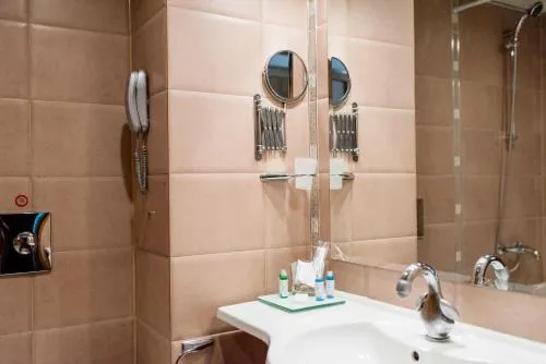 Baie: Halat de baie Prosoape Articole de toaletă gratuite Papuci de casă Uscător de păr Toaletă Hârtie igienică Cadă Baie privată Bucătărie: Mașină de cafea Cană fierbător Uscător de haine Accesibilitate: Etaje superioare accesibile cu liftul Media/Tehnologie: TV cu ecran plat Canale cu plată TV Telefon Canale prin cablu Consolă de jocuri Canale prin satelit Servicii: Serviciu de trezire General : Fier de călcat Încălzire Izolare fonică Aer condiţionat Zonă de living: Zonă de relaxare Facilităţile camerei: Priză lângă pat Pat pliant Mâncăruri și băuturi: Aparat pentru prepararea de ceai/cafea Minibar Exterior: Balcon Dormitor: Lenjerie de pat Dressing Garderobă sau dulap Vedere: Vedere la oraș Activităţi: Cadă cu hidromasaj