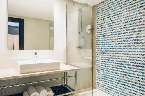 General : Seif Pardoseală de gresie/marmură Încălzire Aer condiţionat Vedere: Vedere la mare Media/Tehnologie: TV cu ecran plat TV Telefon Canale prin satelit Servicii: Serviciu de trezire Baie: Prosoape Articole de toaletă gratuite Uscător de păr Toaletă Duş Hârtie igienică Baie privată Accesibilitate: Întreaga unitate accesibilă cu scaunul cu rotile Facilităţile camerei: Priză lângă pat Mâncăruri și băuturi: Aparat pentru prepararea de ceai/cafea Exterior: Balcon Bucătărie: Frigider Dormitor: Lenjerie de pat Garderobă sau dulap