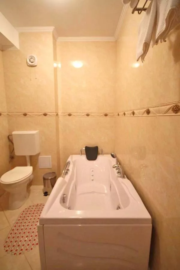 Dimensiuni: 25 mp Numar de camere: 16 camere This double room's standout feature is the hot tub. This air-conditioned double room is comprised of a flat-screen TV with cable channels, a private bathroom as well as a terrace with a quiet street view.