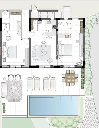 Dimensiuni: 29 mp Numar de camere: 1 camera This double room's special feature is the pool with a view. The spacious double room provides air conditioning, a private entrance, a terrace with sea views as well as a private bathroom featuring a bath. The unit offers 1 bed.