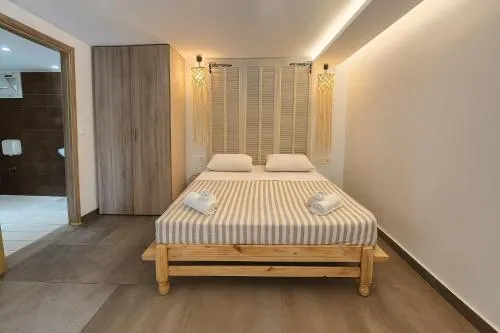 Dimensiuni: 19 mp Numar de camere: 2 camere Această cameră dublă are intrare privată, aer condiționat, o baie privată cu duș și un balcon cu vedere la mare. Unitatea de cazare include 1 pat. Baie privată cu duș
