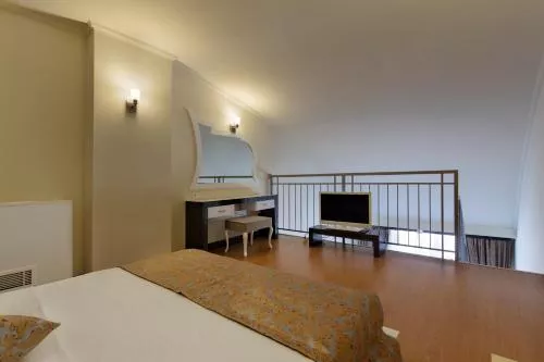 Dimensiuni: 65 mp Numar de camere: 10 camere Tastefully decorated in warm colours, this spacious duplex suite includes a flat-screen TV with satellite channels, air conditioning and a minibar. It has 2 bedrooms and a seating area. It also offers a balcony.