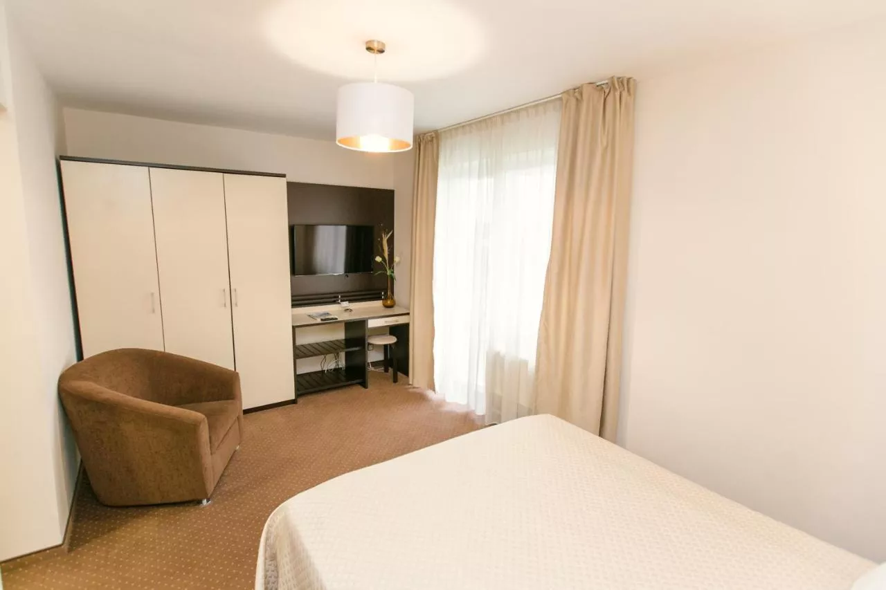 Dimensiuni: 20 mp Numar de camere: 3 camere Tariful acestei camere include o consultație medicală, 3 tratamente pe zi de persoană și acces gratuit la piscinele termale interioare și în aer liber, la saună și la sala de fitness.