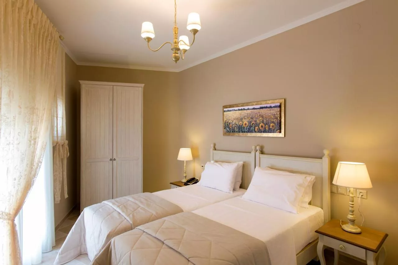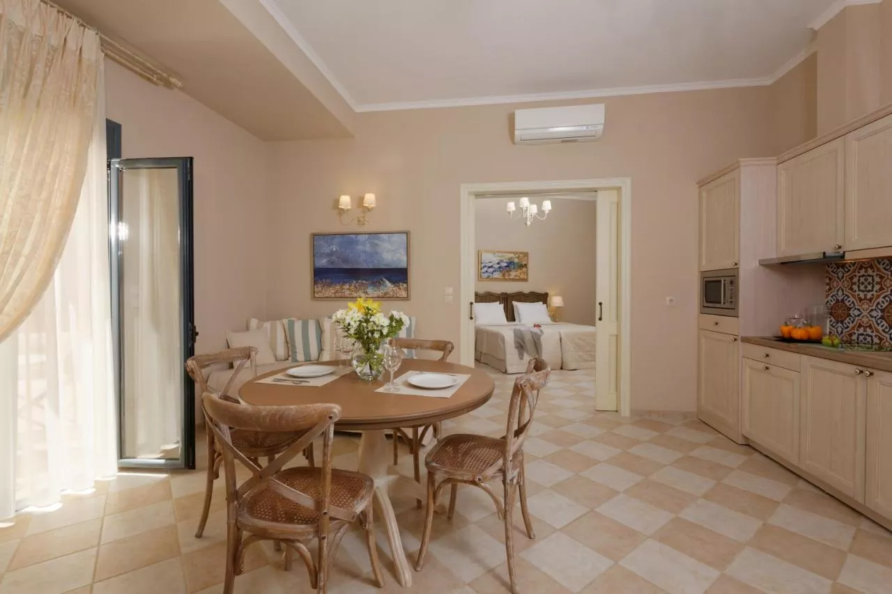Decorate în culori neutre, cu mobilier clasic și detalii moderne, toate tipurile de cazare de la Ionia Suites sunt dotate cu aer condiționat și televizor. Acestea sunt, de asemenea, echipate cu saltele și perne hipoalergenice COCO-MAT. Există o bucătărie bine echipată cu un cuptor cu microunde și un frigider. Baia privată are cadă sau duș și uscător de păr.