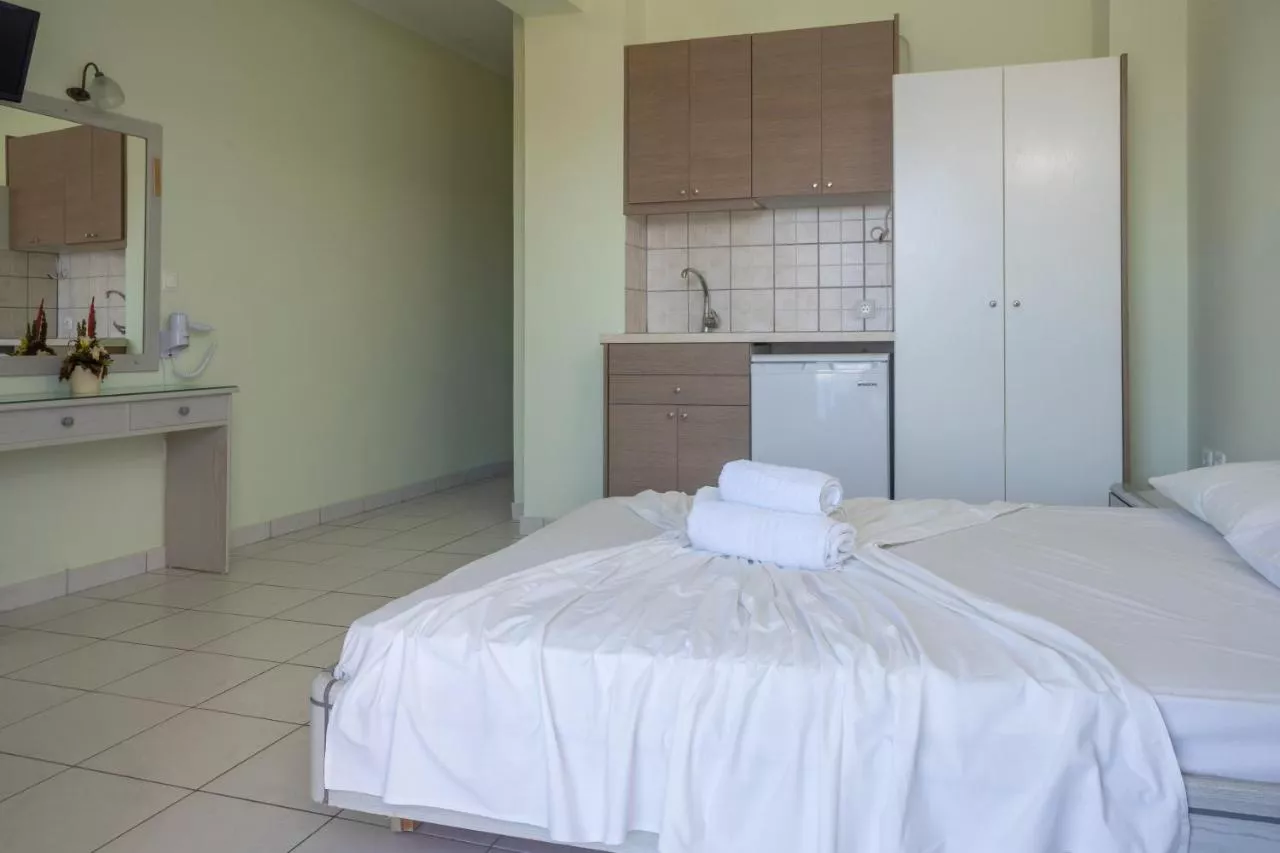Deschizându-se spre balcoane mobilate, studiourile cu aer condiționat de la Ionian Melody dispun de o chicinetă cu frigider mini. Fiecare unitate are un televizor și o baie privată cu duș și produse de toaletă gratuite.